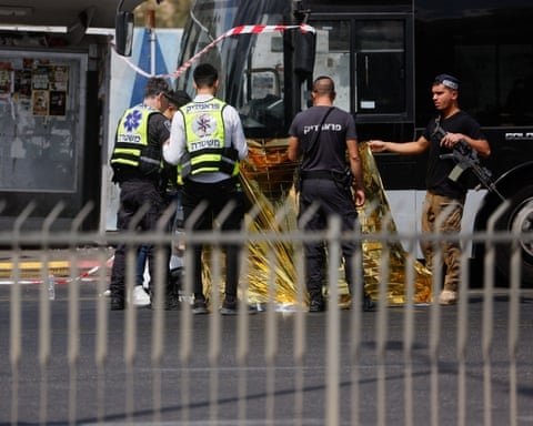 Six people were killed and at least twelve others wounded when armed assailants opened fire at a bus stop in northern Jerusalem during Monday morning’s rush hour. Security forces confirmed both attackers